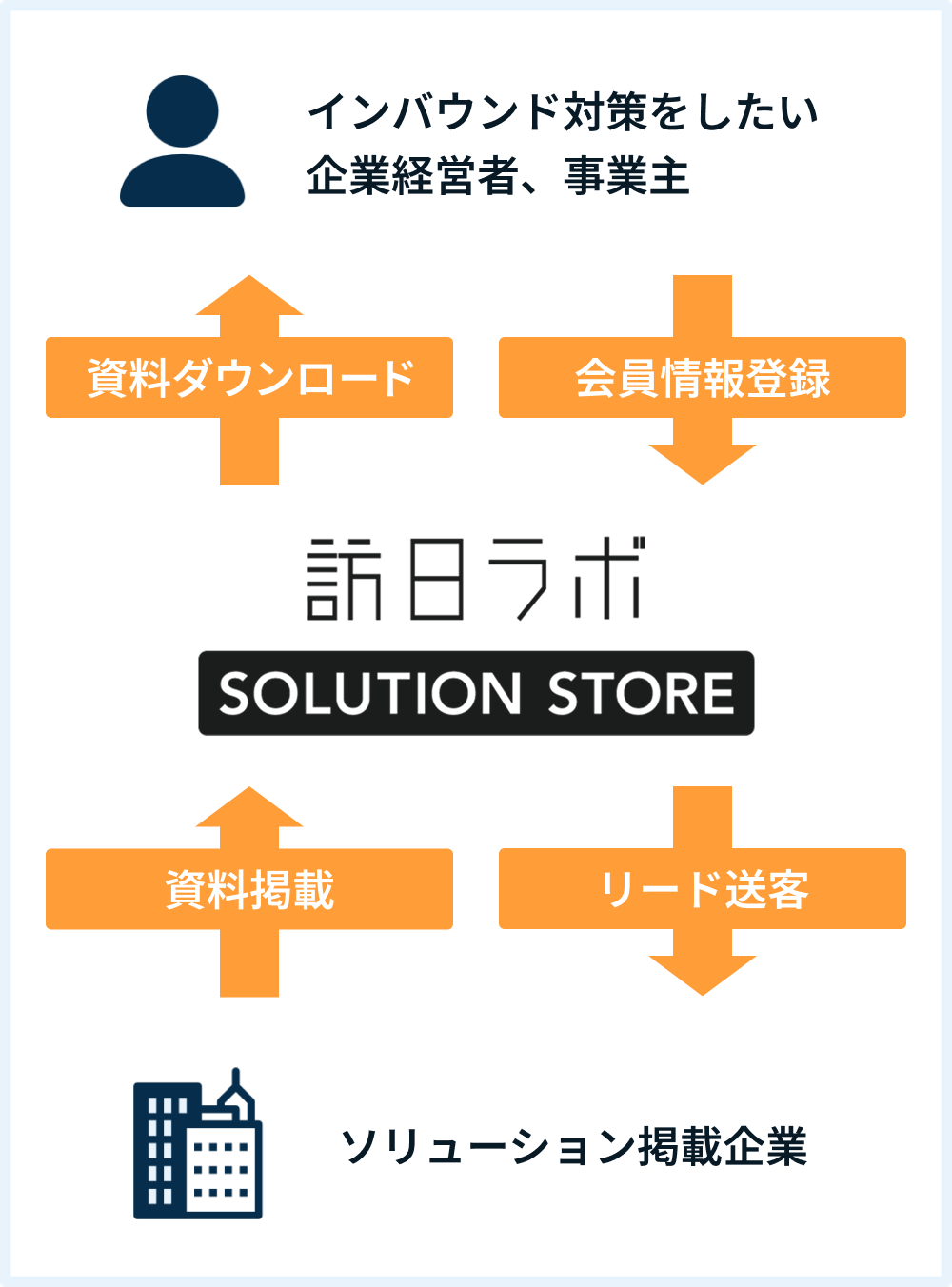 インバウンド対策をしたいユーザーとインバウンドソリューション掲載企業の効率的なマッチングを実現します。