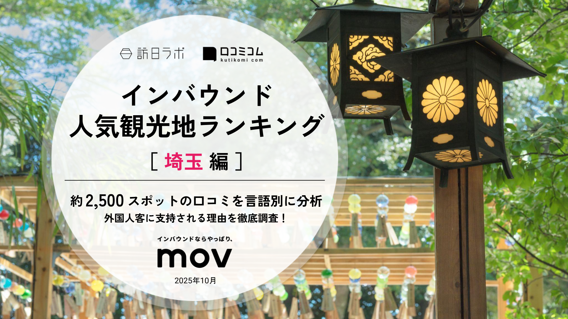 本レポートでは、埼玉の観光スポットに寄せられた口コミを調査。 約1,400 件の外国語口コミをもとに訪日ラボが独自作成したインバウンド人気観光地ランキング[埼玉 編]を発表します!