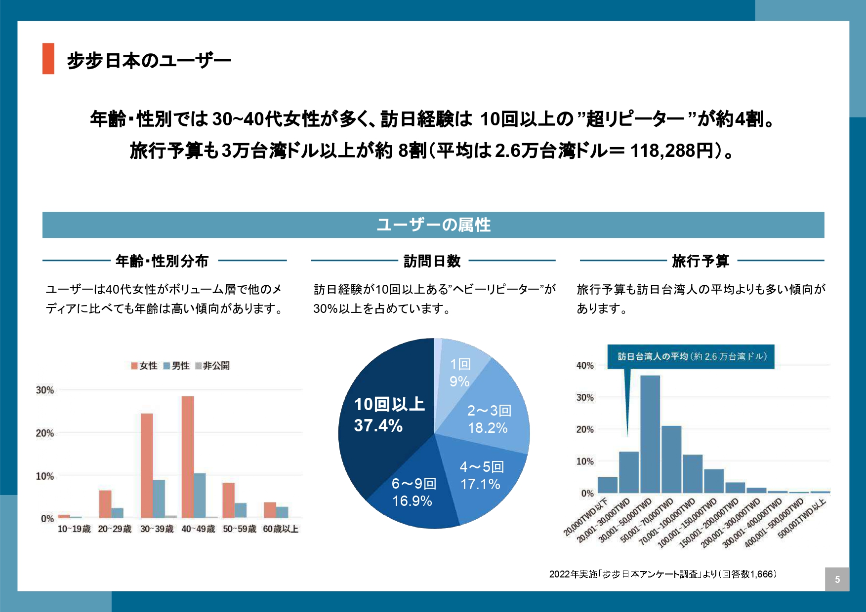 訪日回数10回以上のユーザー割合が30%と高く、台湾・香港の多くの訪日旅行リピーターに支持されるメディアです。