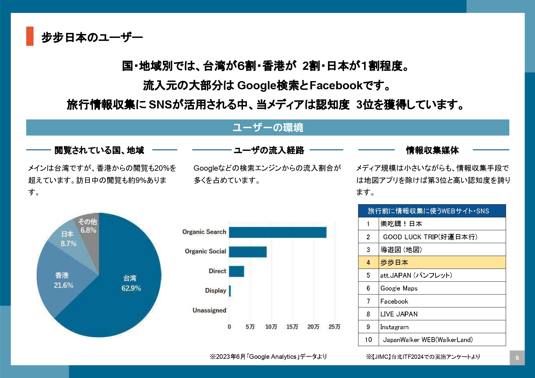 サイトユーザーの3割は訪日経験10回以上、その内4割が20回以上という超親日家。サイト開設から10年に渡り、質の高い情報発信・現地ツアー等でユーザーの信用を得ています。ユーザーの周囲への発言力も高く、認知があまり高くない地域の集客にも成功しています。