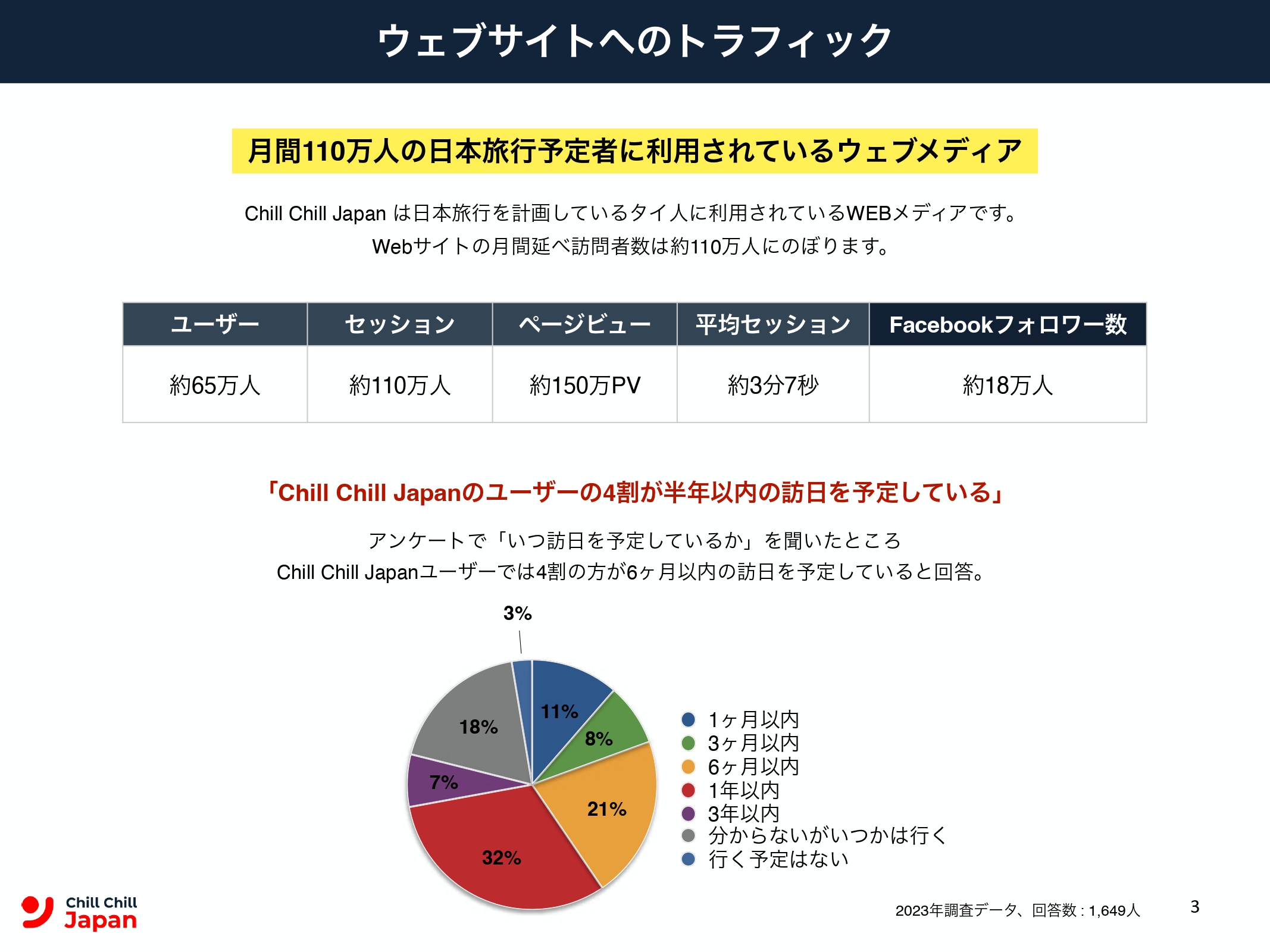 Chill Chill Japan は日本旅行を計画しているタイ人に利用されているWEBメディアです。インバウンドプロモーションの際、単に日本に興味のあるタイ人にアプローチするよりも、日本行きの航空券を既に購入済みの人や、旅行計画中の人の方が来訪見込みは当然高くなります。