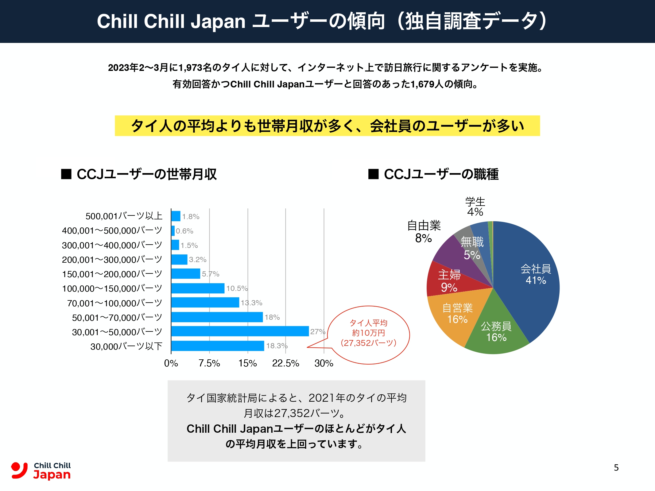 実際にChill Chill Japanを利用しているユーザーの7割がリピート訪日タイ人でこれらに直接アプローチできるのはChill Chill Japanだけです。