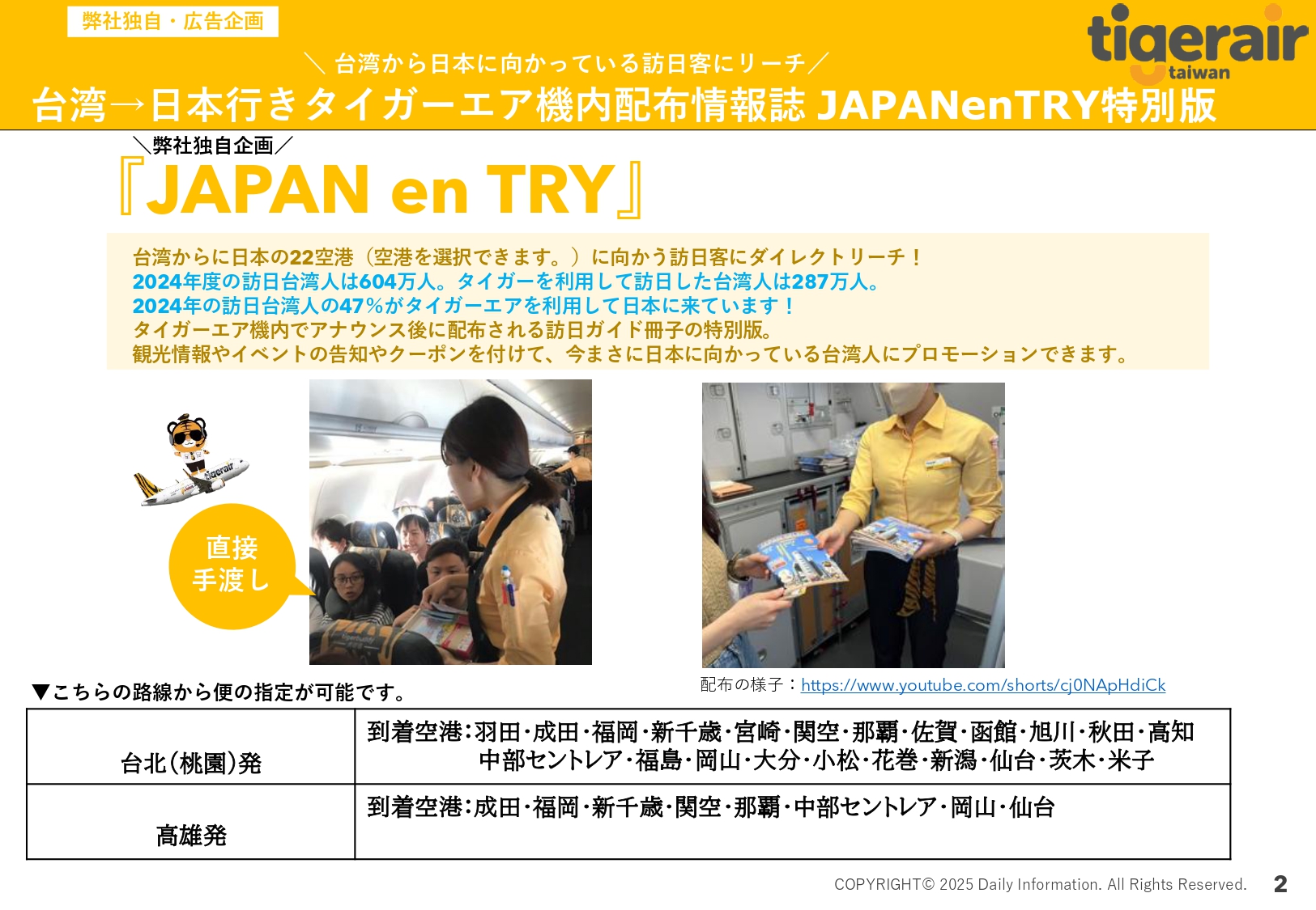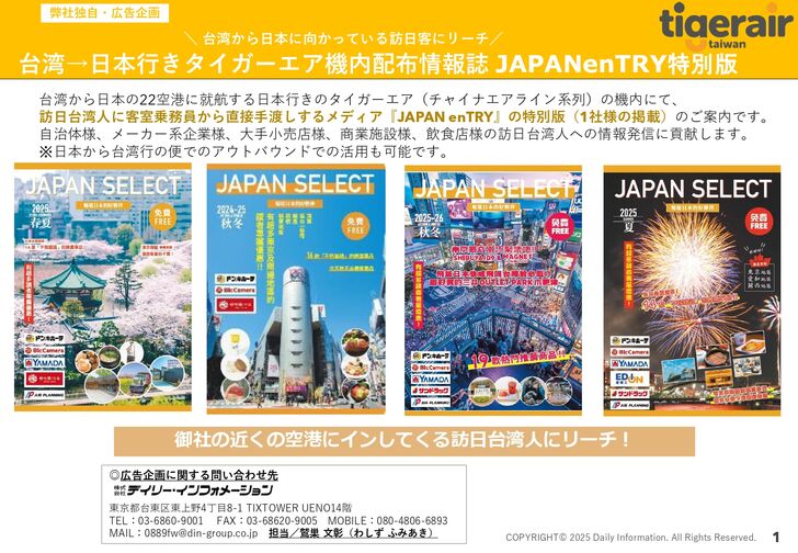 台湾→日本行きタイガーエア機内配布情報誌 JAPANenTRY特別版
