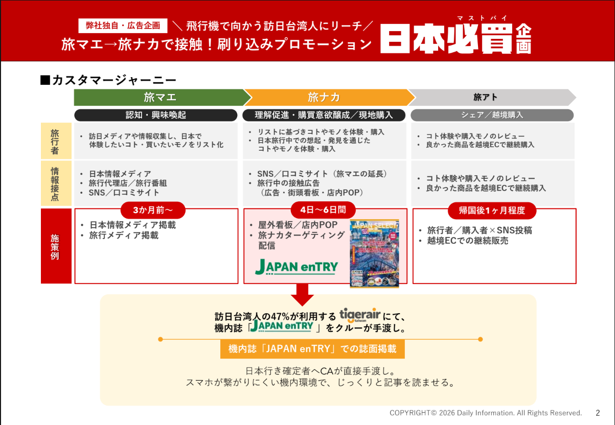 デジタルでの情報配信だと、いつ日本にくる人かわからないという課題を解決。 - ポイント2訪日台湾人に直接の機内手渡し