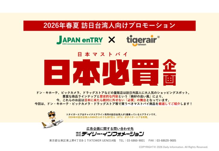 お得な情報が好きな台湾人に向けて「クーポン・特典・大手小売り流通店の免税クーポン」を紹介することで誌面の注目度もアップ!日本到着後の旅程やお買い物リストに加えて頂けるような、魅力的な最新情報を冊子にまとめてお届けします。