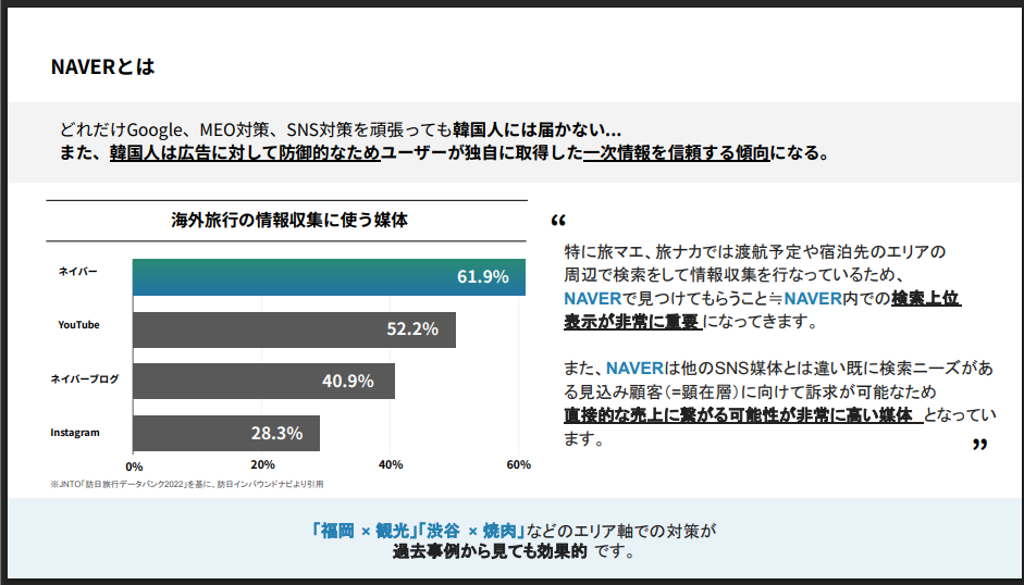 訪日客No.1・年間800万人の韓国人獲得、1記事4万円〜/韓国検索シェア68%のNAVERで2,000名の韓国ブロガーがPR記事を量産。検索経由の顕在層を獲得
