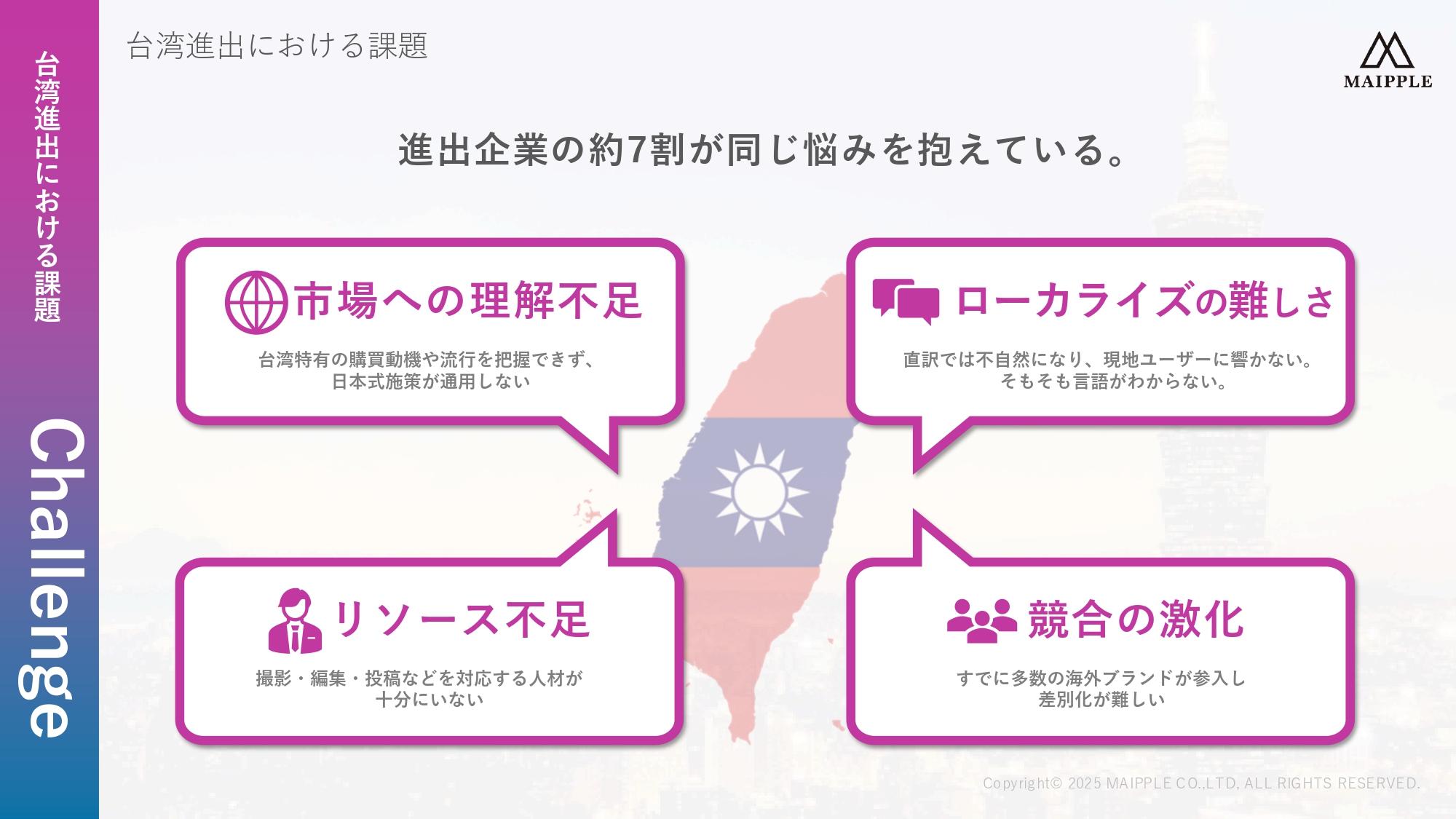 台湾に特化したSNS運用代行サービスとして、現地の文化や習慣を踏まえた最適な運用をご提供いたします。