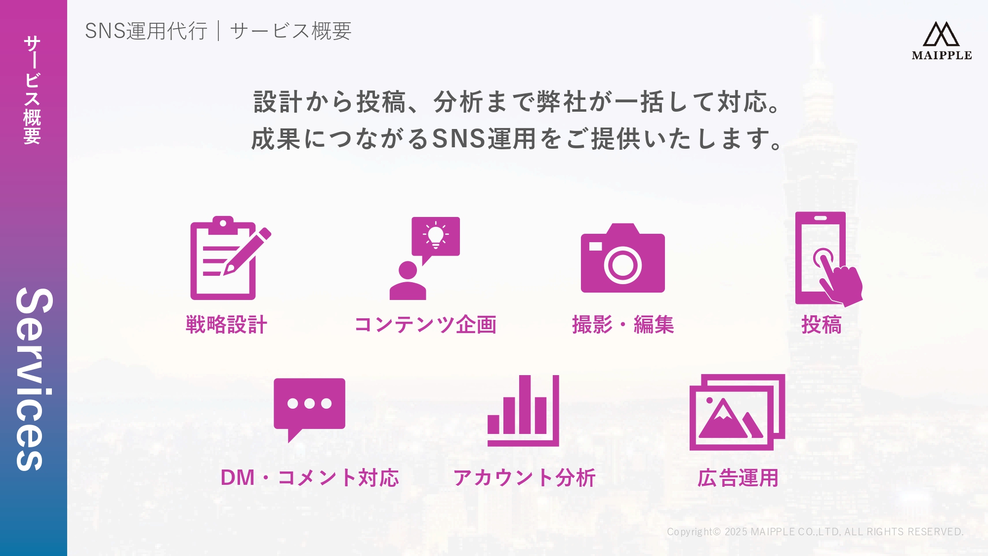 戦略立案から投稿、効果分析まで、一気通貫でサポートできるのが私たちの強みです。