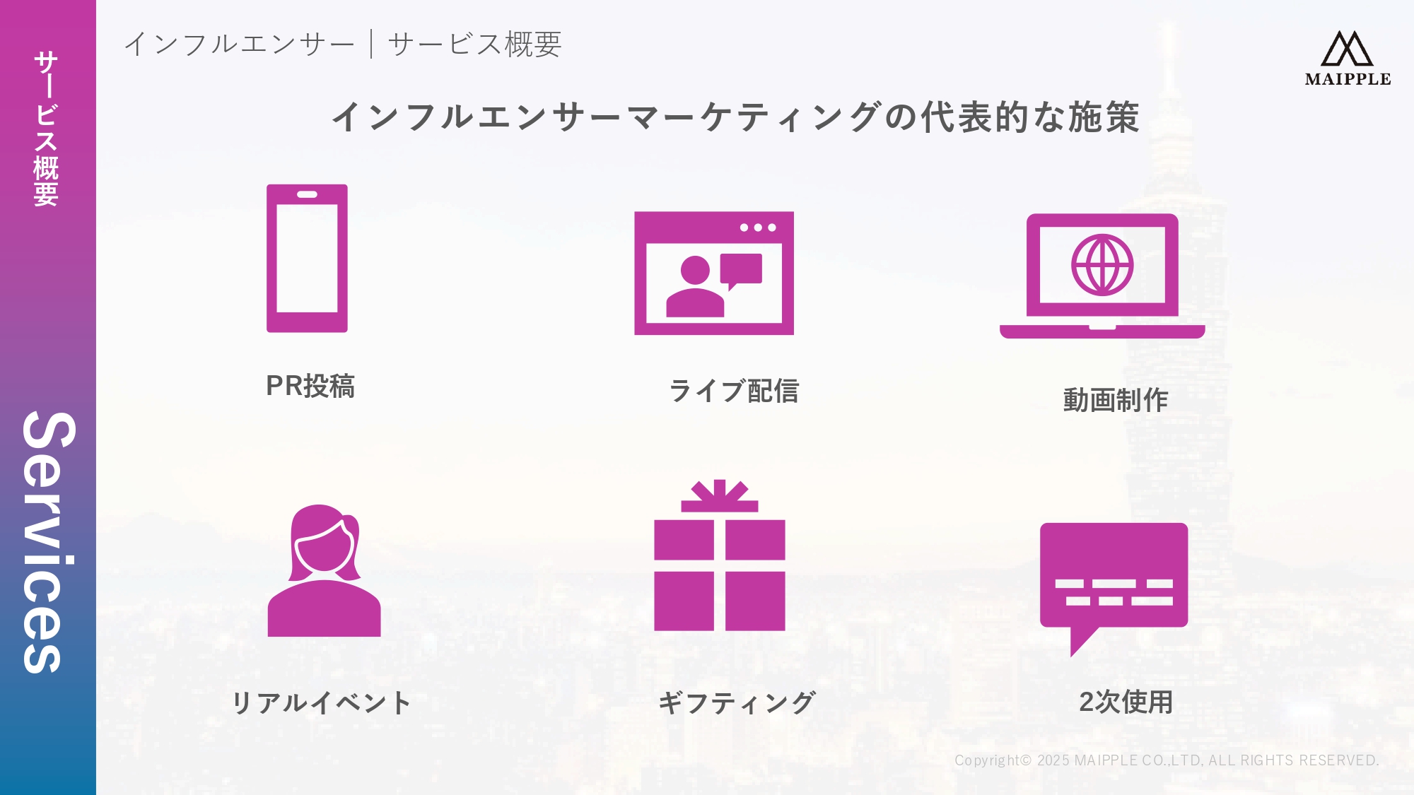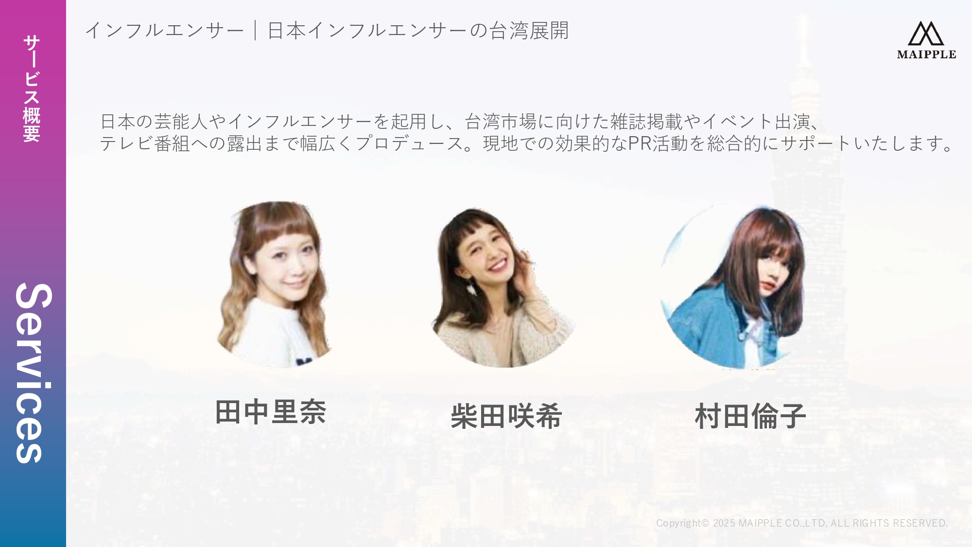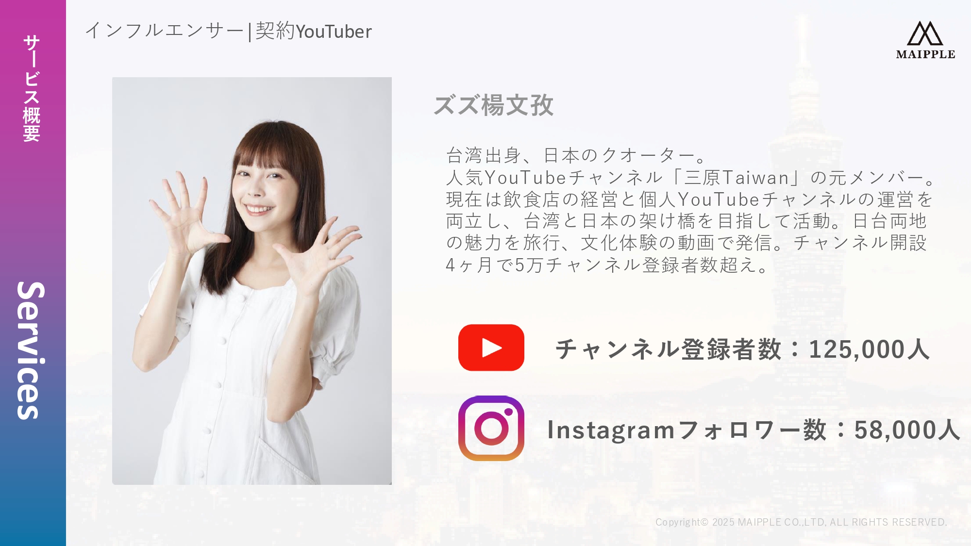 台湾に向けたインフルエンサーマーケティングに特化したサービスを提供しています